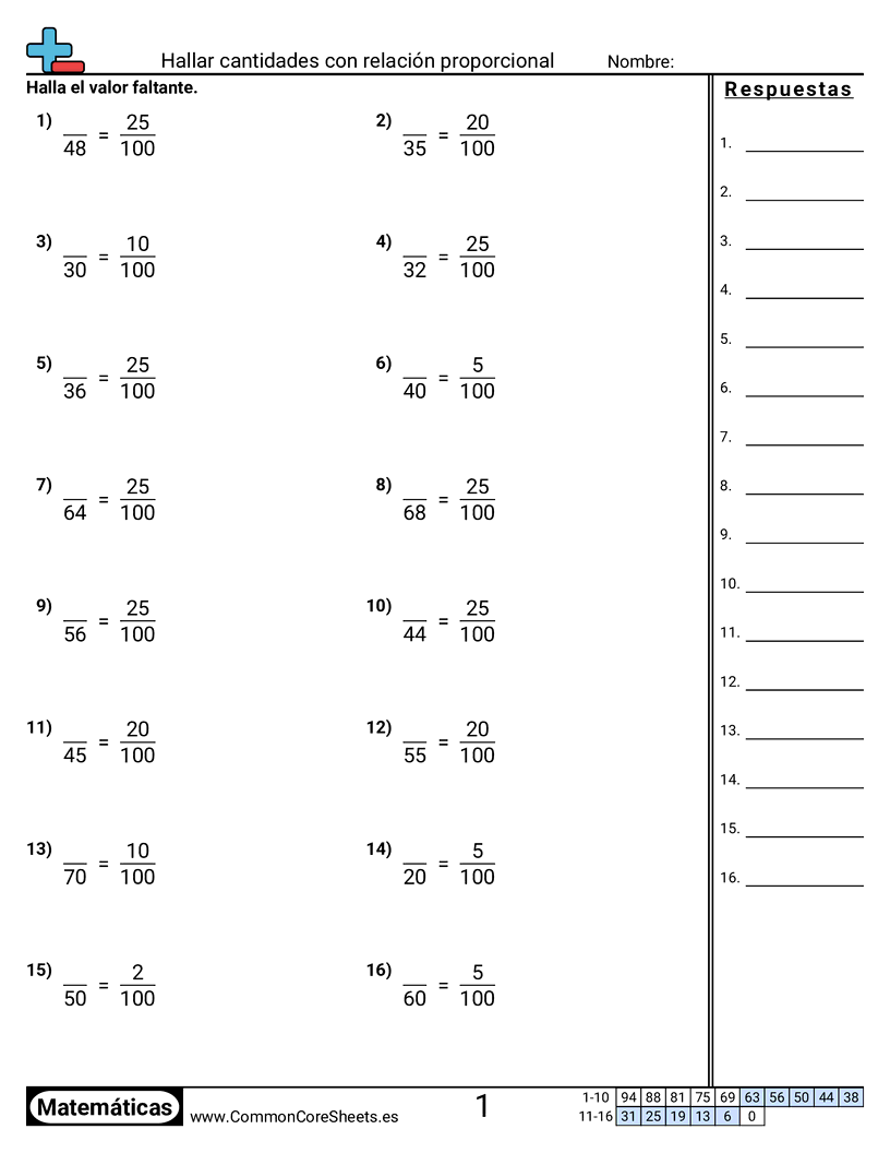 Hojas de trabajo gratis de math para 7mo Grado (7rp3) sobre Hallar cantidades con relación proporcional. Cada hoja tiene 16 ejercicios con hoja de respuestas y es ideal para maestros y educación en casa. Puedes descargar el PDF, crear tarjetas de memoria o configurarlo para aprendizaje en línea.